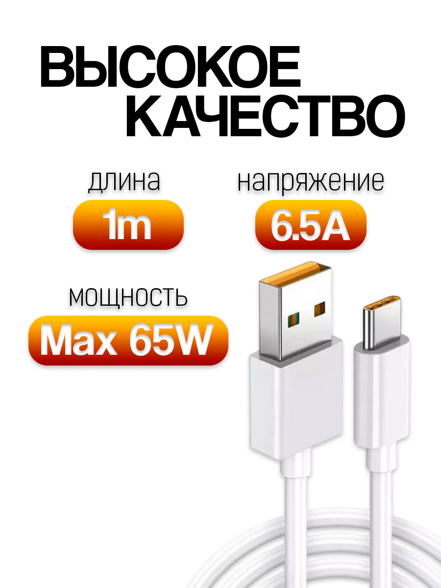 Кабель зарядный для Realme (Type-A - Type-C / 65W) с поддержкой быстрой зарядки SuperVOOC информация: