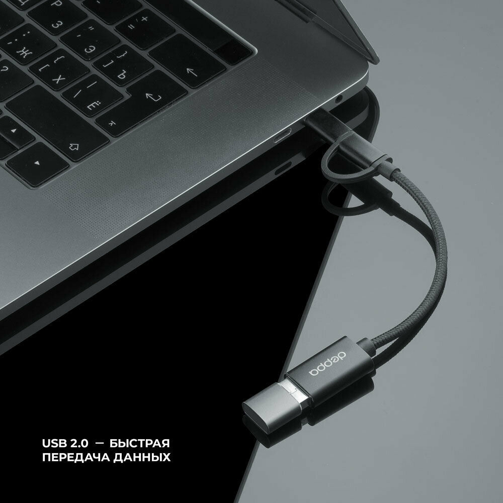Отзывы на OTG адаптер USB - micro USB + USB-C, алюминий, нейлон, 0.15 м, черный, Deppa 72319