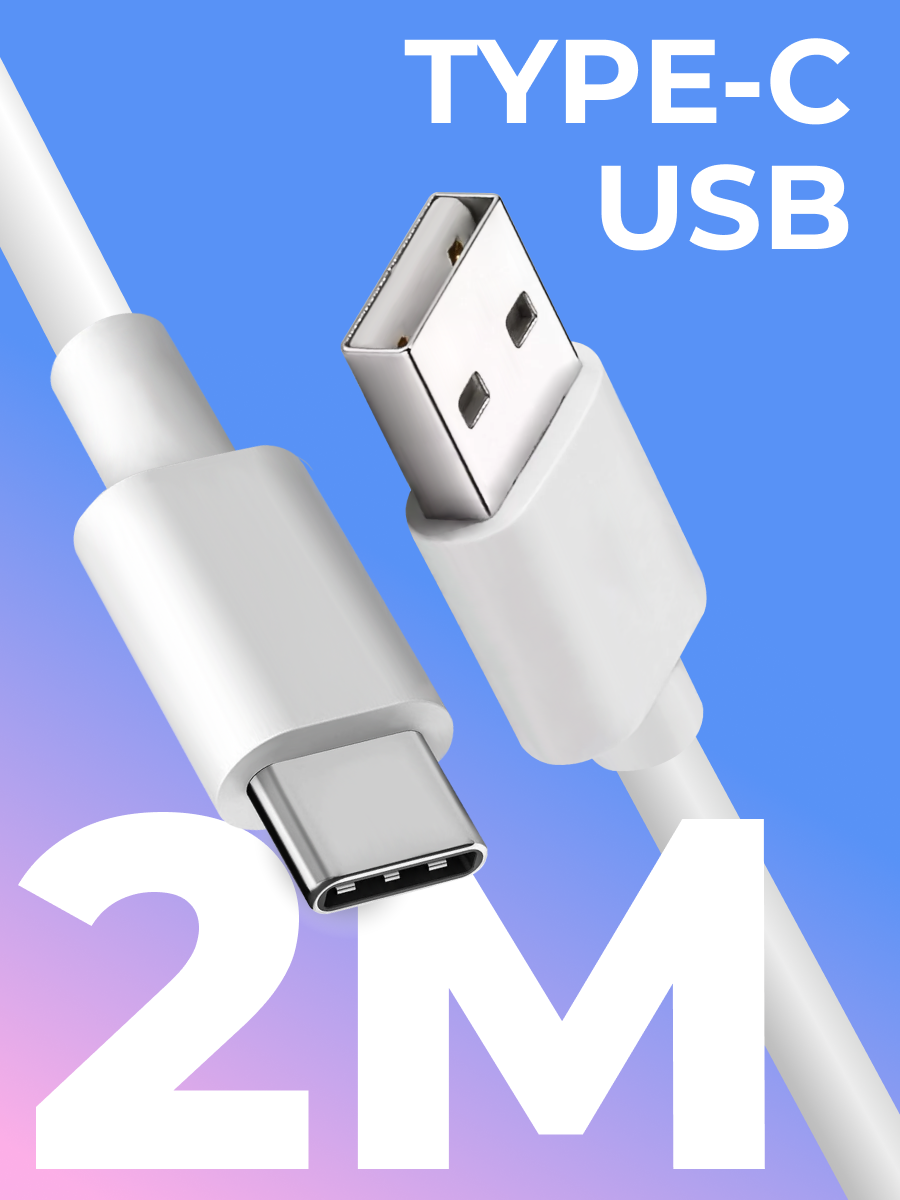 10 цен на Кабель USB Type-C - USB Type-A, длина 2 м, белый / Провод УСБ Тайп-Си - УСБ Тайп А / Шнур для зарядки