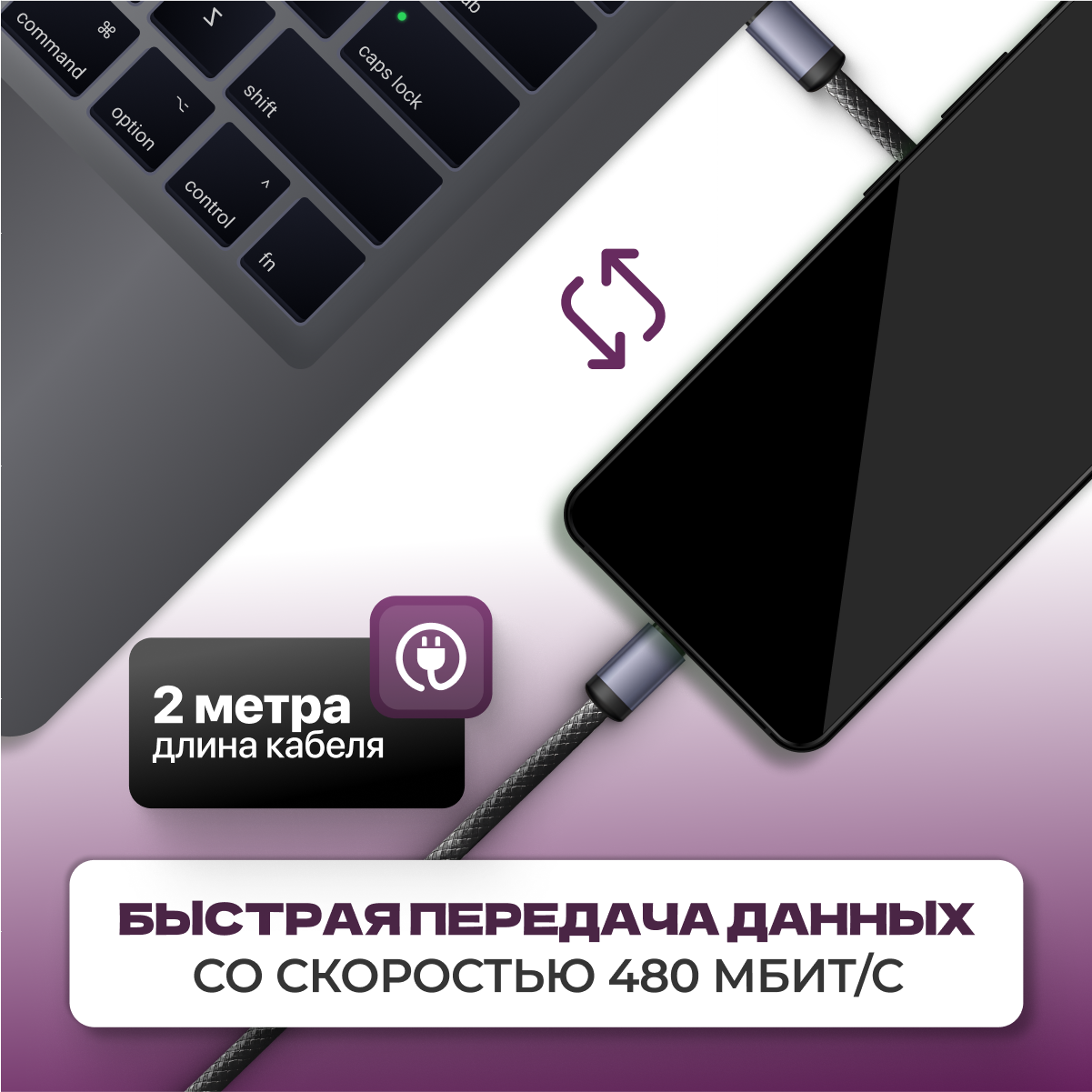Кабель Type-C 2м — быстрая зарядка и передача данных для iPhone 15, Samsung, Xiaomi, ноутбуков, белый 430 ₽