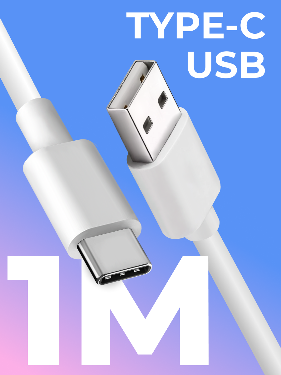 Кабель Type-C / USB для зарядки мобильных устройств / Длина 1 метр / Провод для телефона, планшета, наушников / Шнур с разъемом ЮСБ Тайп Си / Белый информация: