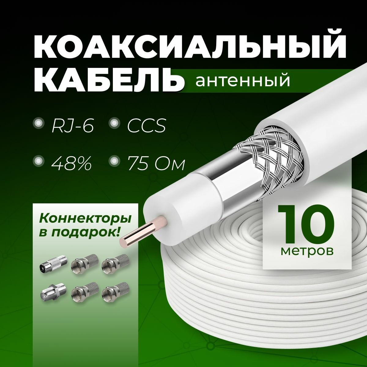10 цен на Кабель антенный для телевизора, 10 метров, RG-6, CCS, 48%, 75 OM