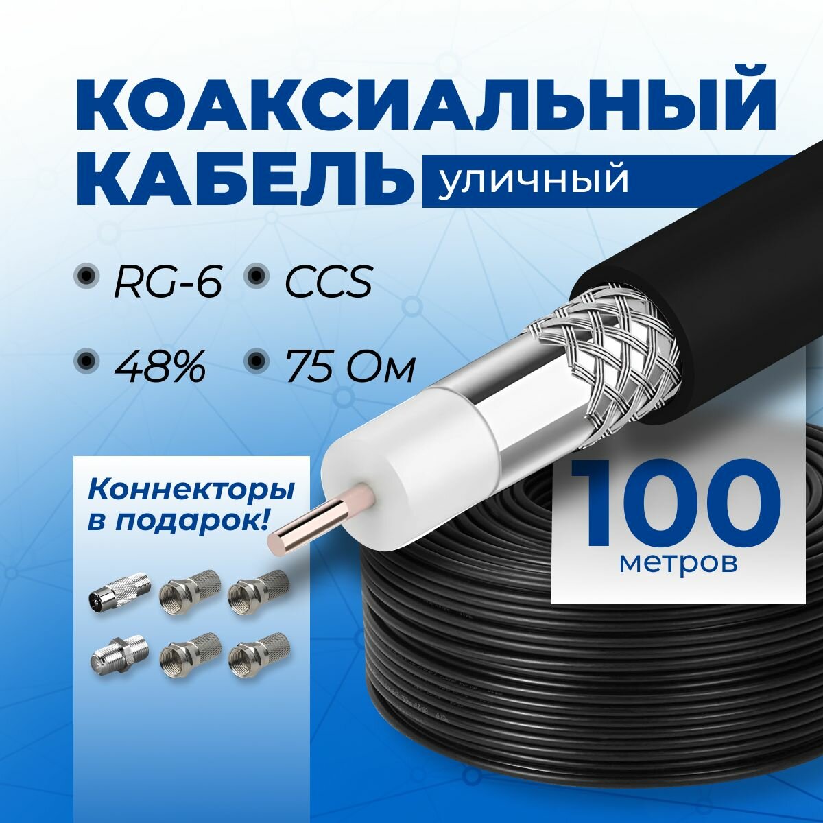 10 цен на Кабель антенный для телевизора, 100м, уличный, RG6, CCS, 48%, 75OM