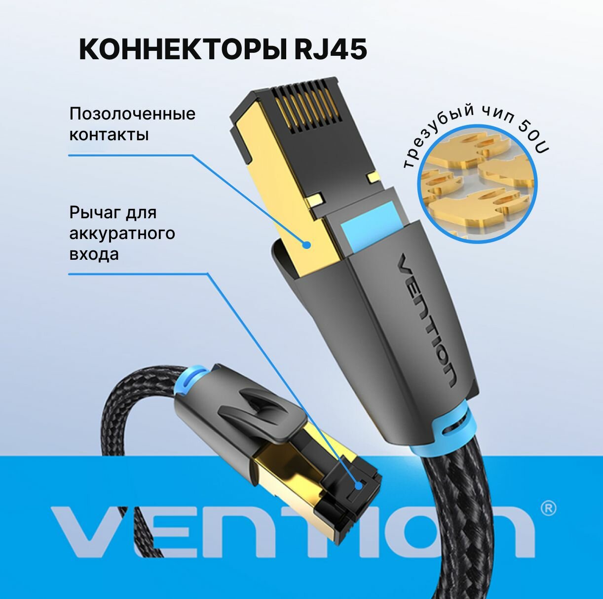 Отзывы на Патч корд 1 метр / интернет кабель прямой SFTP cat.8 RJ45 Vention сетевой кабель Ethernet с тканевой оплеткой арт. IKGBF