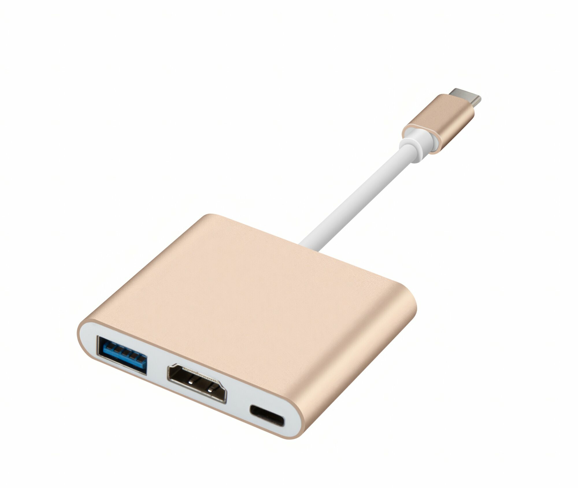 Отзывы на Многопортовый кабель-адаптер переходник TECH разветвлитель Type-C - 3 в 1, USB 3.0 — HDMI 4K / USB 3.0 / USB-C, золотой