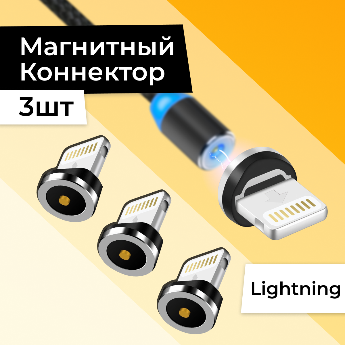 Комплект 3 шт. Магнитный Lightning коннектор для iPhone / Сменный наконечник Лайтнинг для зарядки информация: