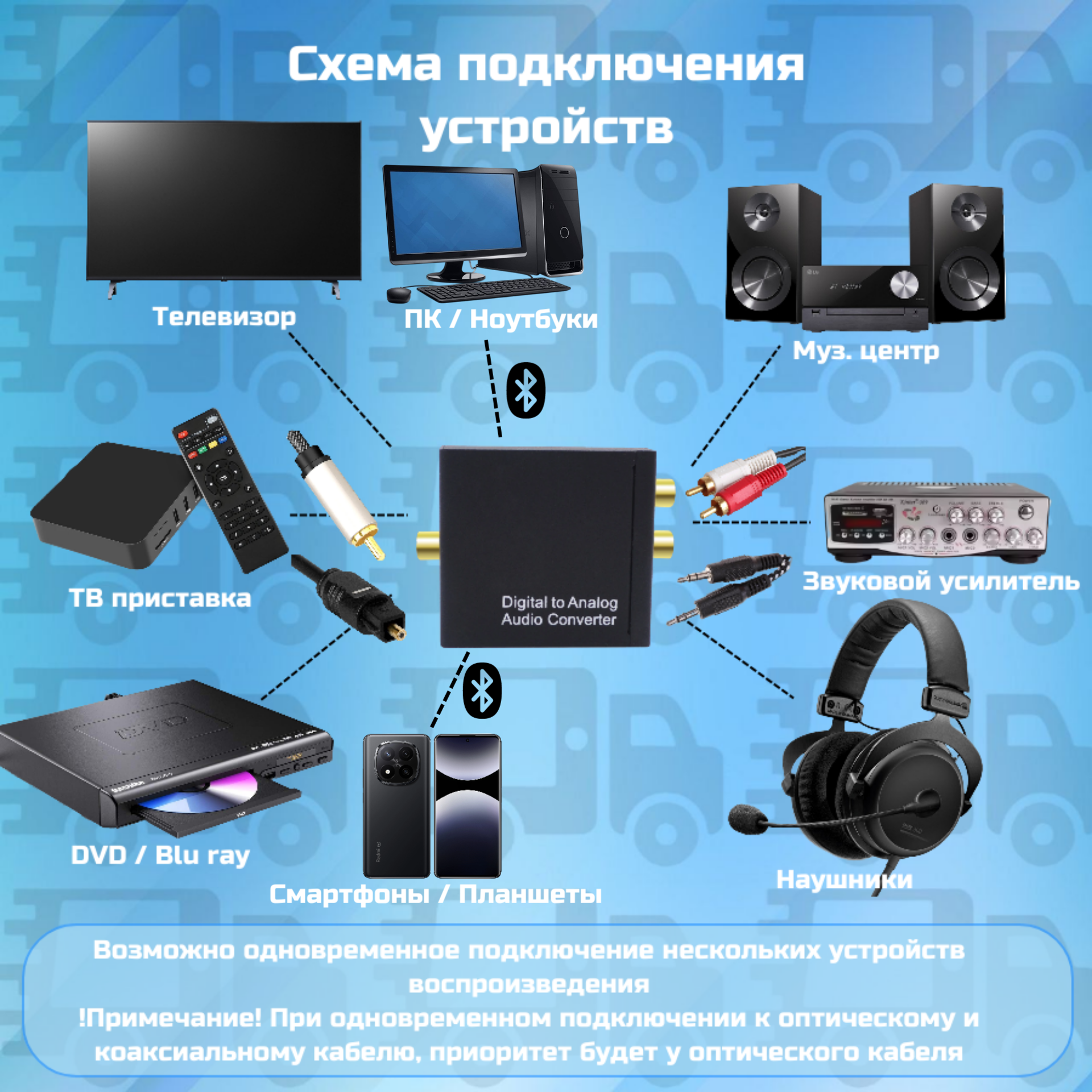 Конвертер оптика RCA тюльпаны Optical SPDIF Toslink Coaxial Digital с блоком питания TV dvd телевизор Ps5 PS4 PS3 XBOX соундбар информация: