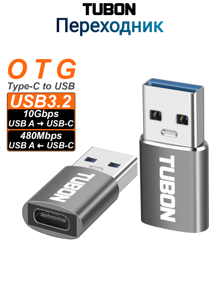 Отзывы на Переходник адаптер OTG TUBON USB3.2 USB - Type-C 10Gbps/480Mbps 60W AUS02 Серый
