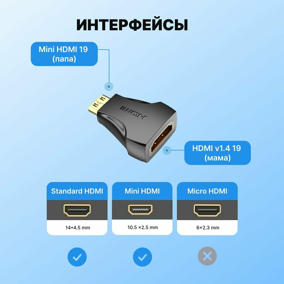 10 цен на Адаптер переходник HDMI - mini HDMI 4К Vention переходник для фотоаппарата, планшета арт. AISB0