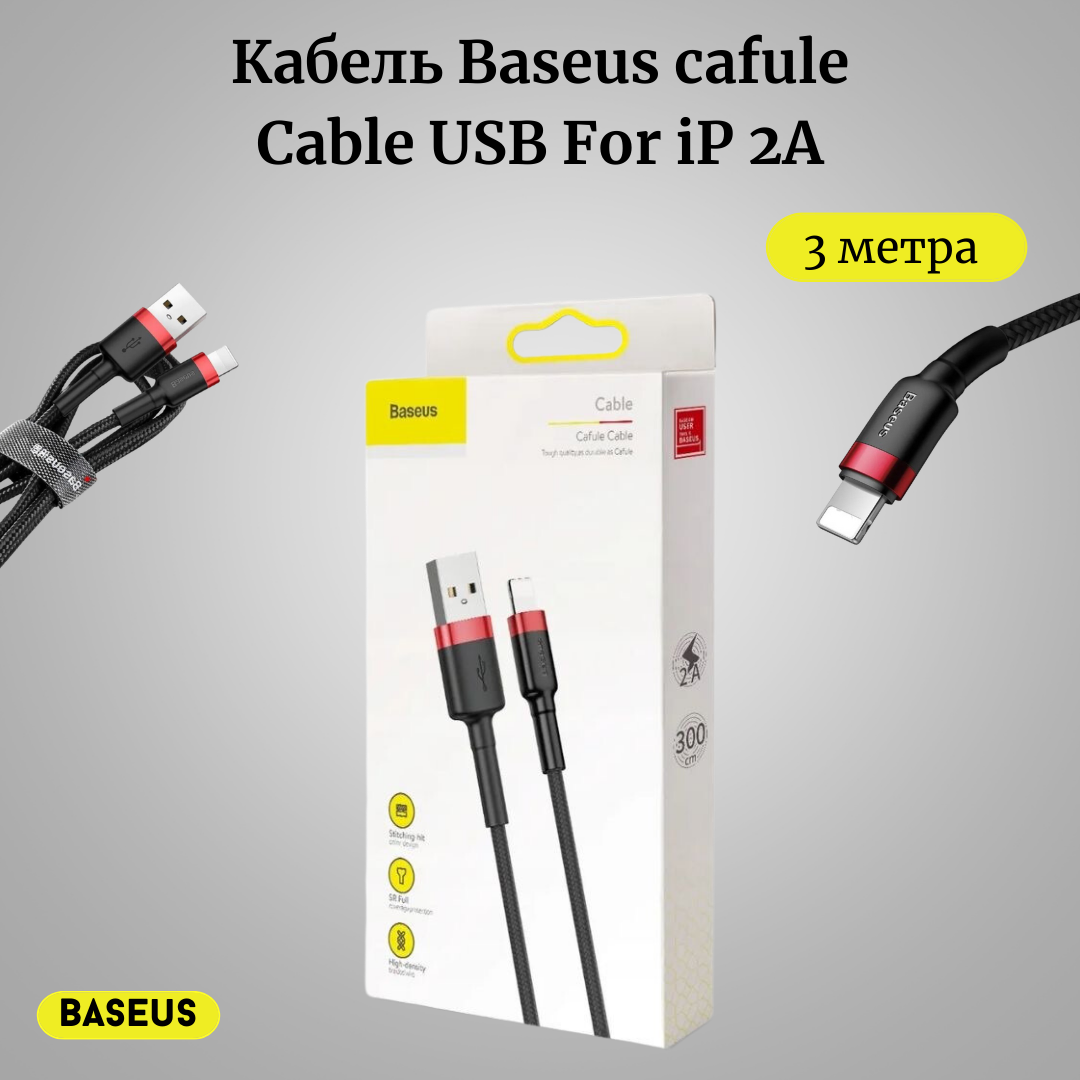 Отзывы на Кабель Baseus Cafule Cable USB - Lightning 2 A 3 м, цвет Красный/Черный (CALKLF-R91)