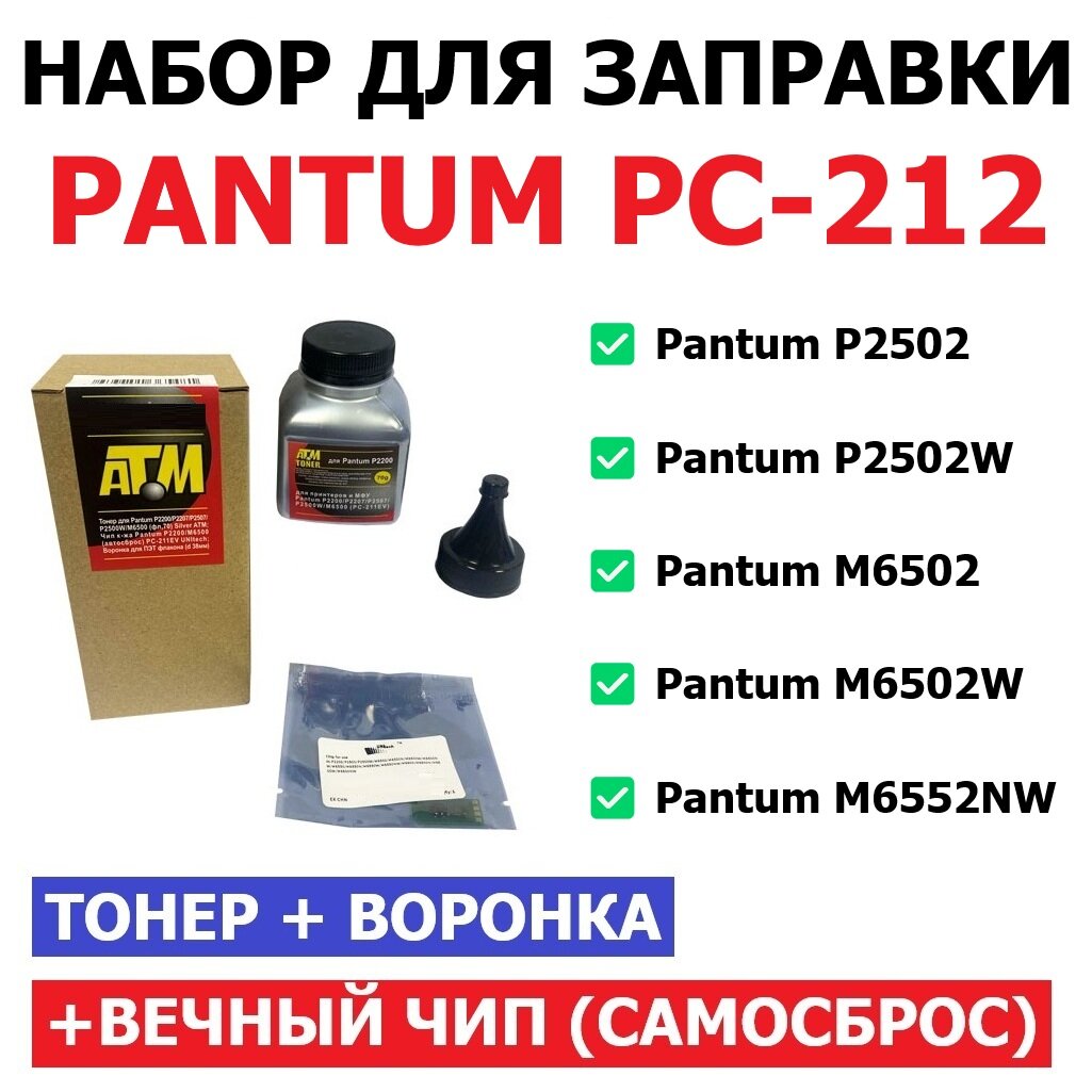Набор для заправки Pantum P2502 P2502W M6502 M6502W M6552NW PC-212 / PC-212EV - (воронка + тонер + вечный чип) информация: