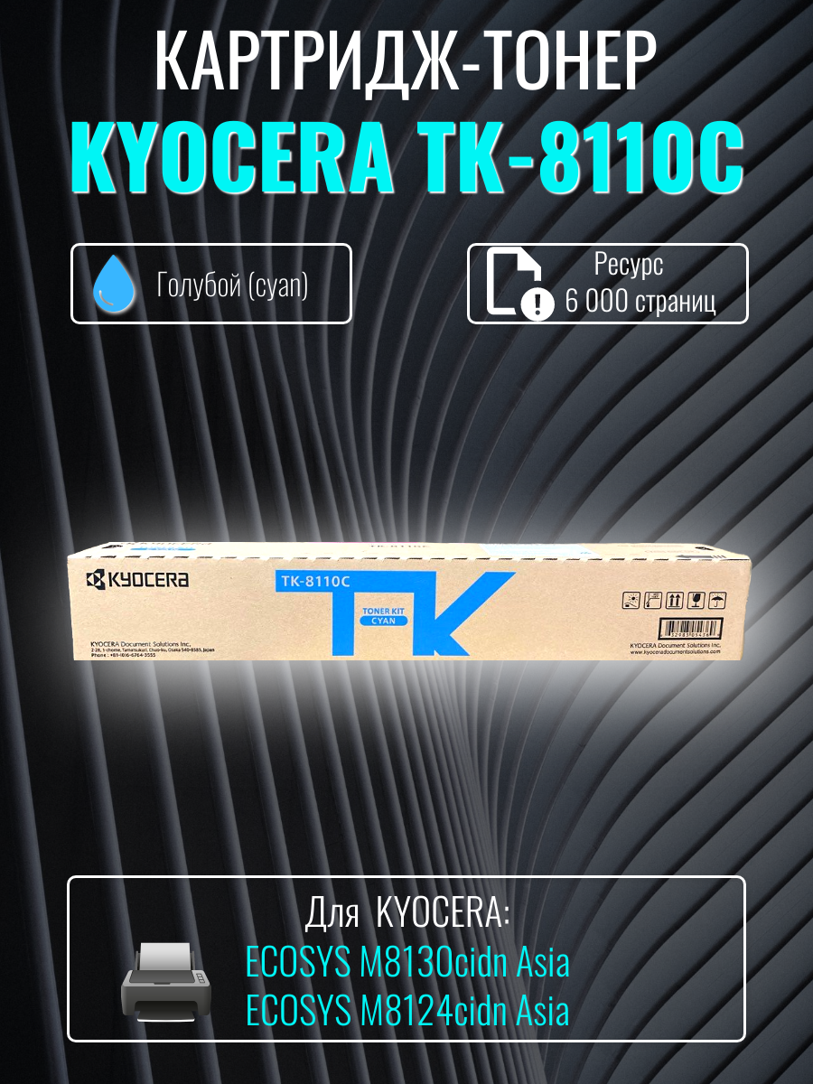 Лазерный картридж Kyocera TK-8110C Азия голубой ресурс 6 000 страниц (1T02P3CAX0) информация: