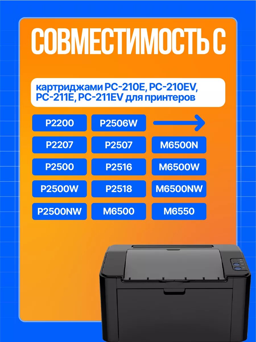 Заправочный комплект для картриджа PC-210/211 (Е, EV, RB) для принтера Pantum P2200, M6507W и тд, чип-вечный, 65г 460 ₽