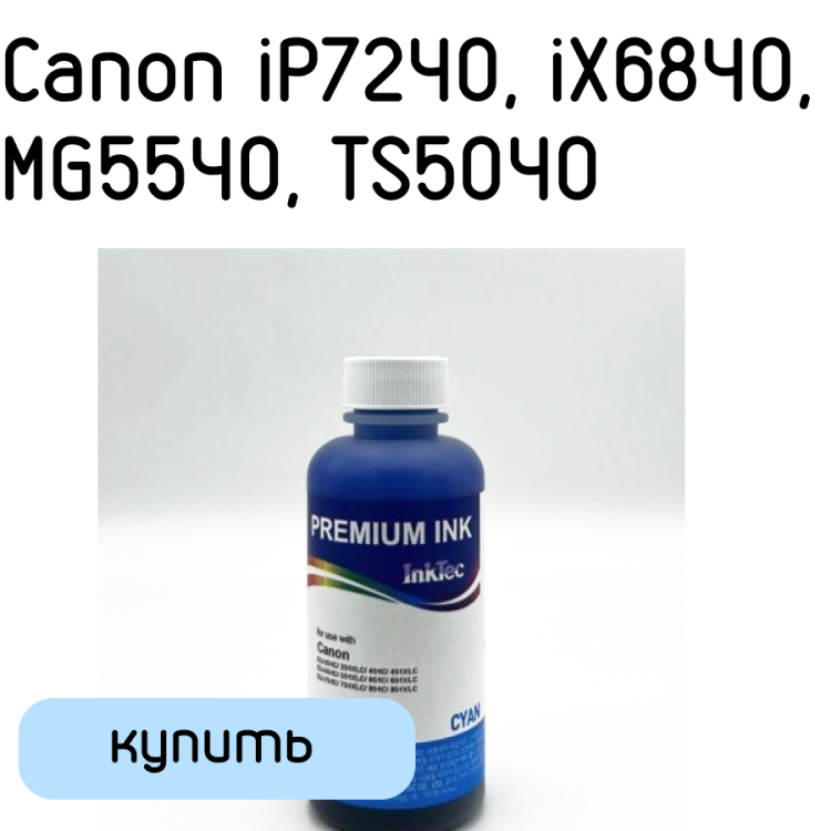 10 цен на Чернила Canon iP7240 iX6840 MG5540 TS5040 (InkTec) C5051-100MC Cyan (100мл) водорастворимые