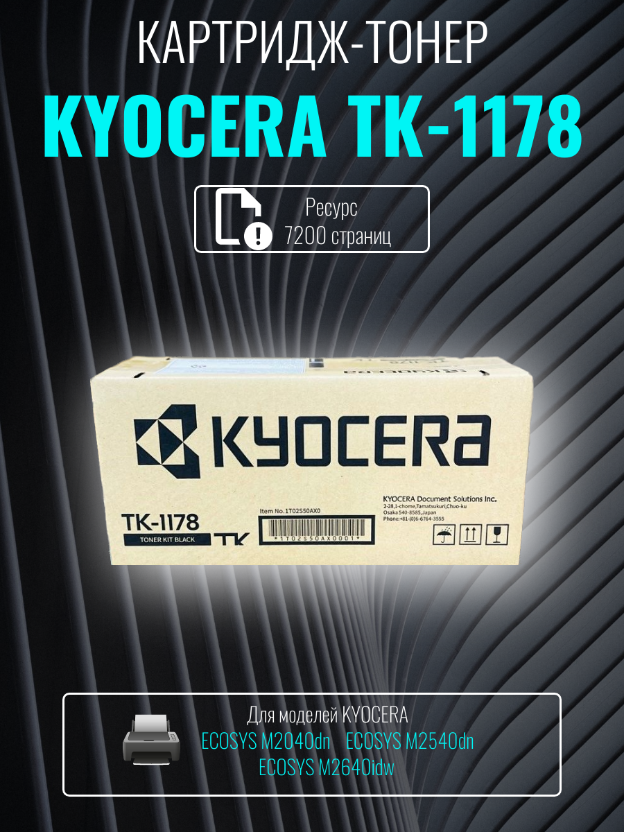 Лазерный картридж Kyocera TK-1178 черный ресурс 7 200 страниц (Азия) (1T02S50AX0) информация: