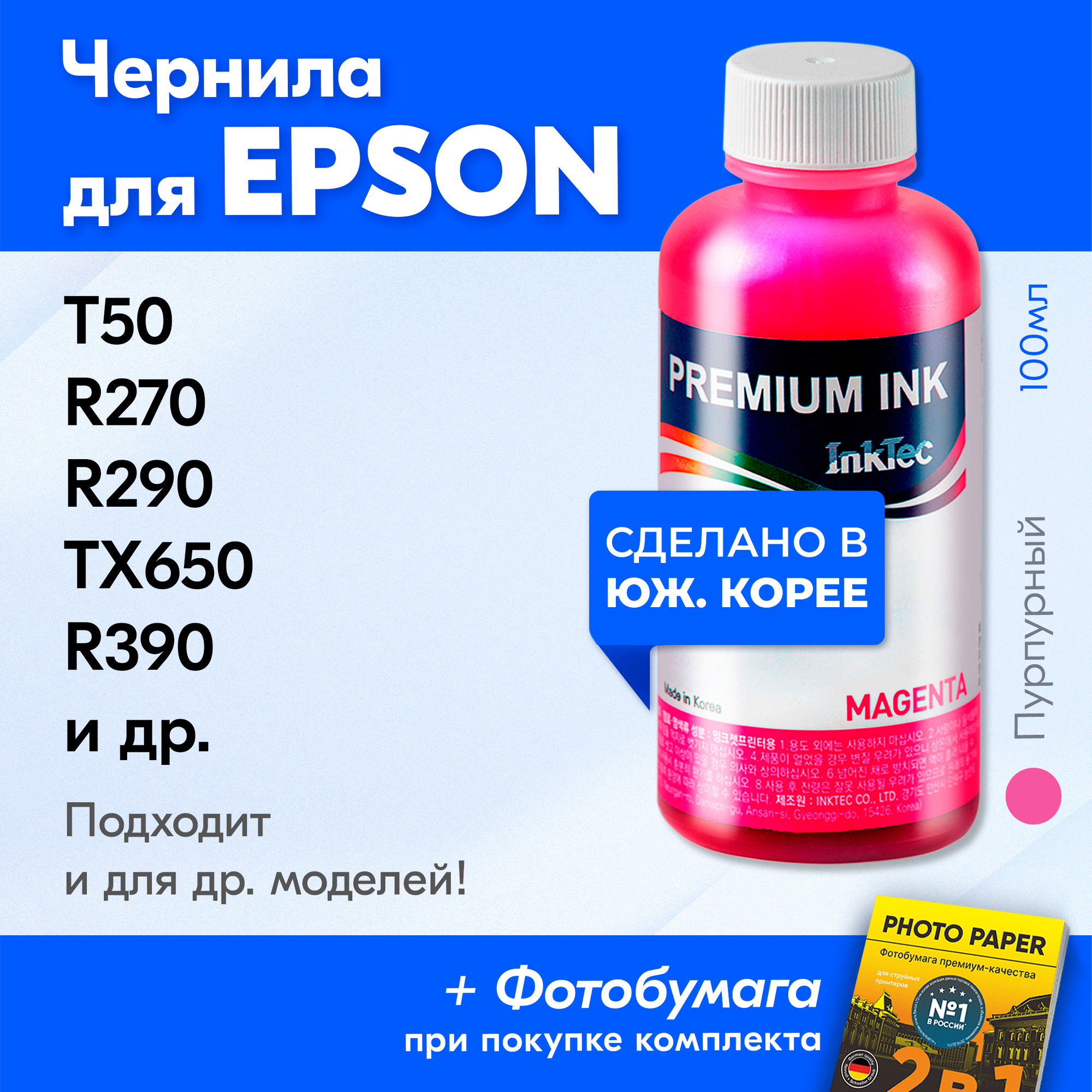 Отзывы на Чернила для принтера Epson Stylus Photo T50, R270, R290, TX650, R390 и др, для T0823. Краска на принтер для заправки картриджей, (Пурпурный) Magenta