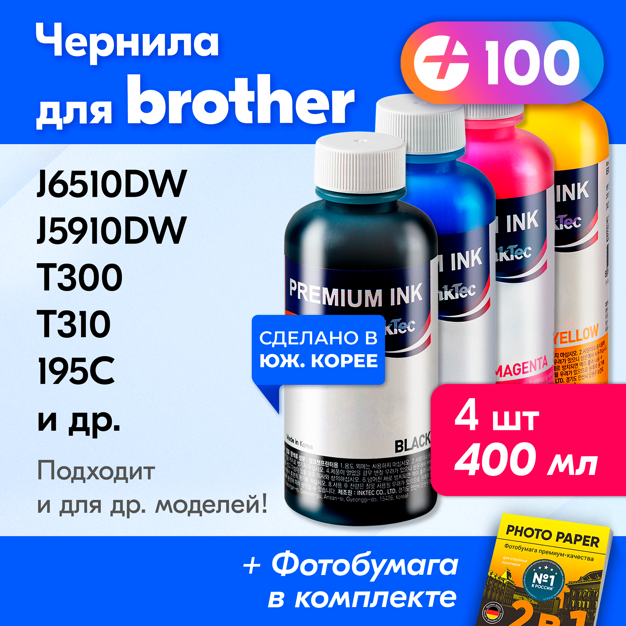 10 цен на Чернила для принтера Brother DCP T310, T510W, T710W, 195C, J100 и др. Краска на принтер для заправки картриджей (Комплект 4шт), B1100