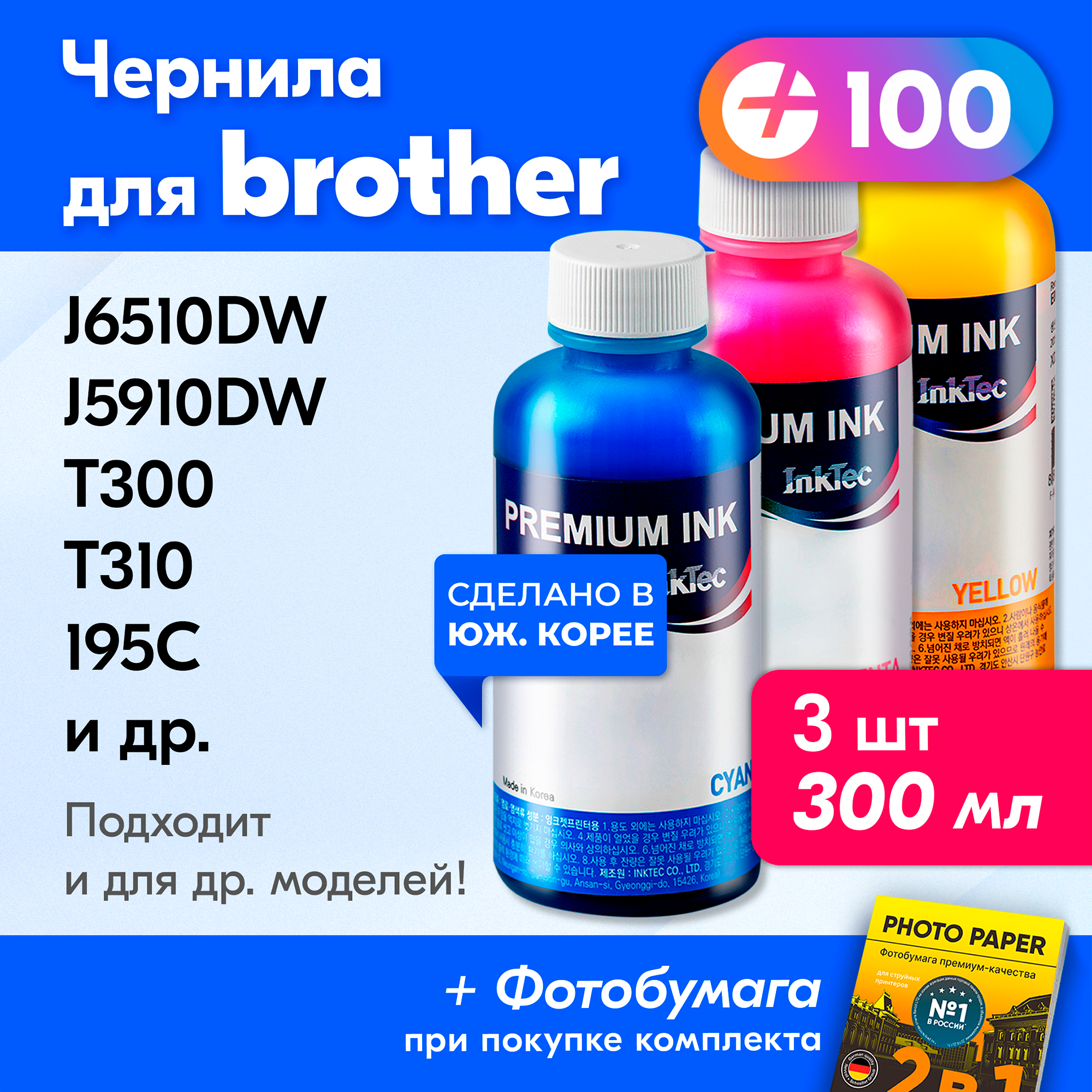 10 цен на Чернила для принтера Brother DCP T310, T510W, T710W, 195C, J100 и др. Краска на принтер для заправки картриджей (Комплект 3шт), Цветные, B1100