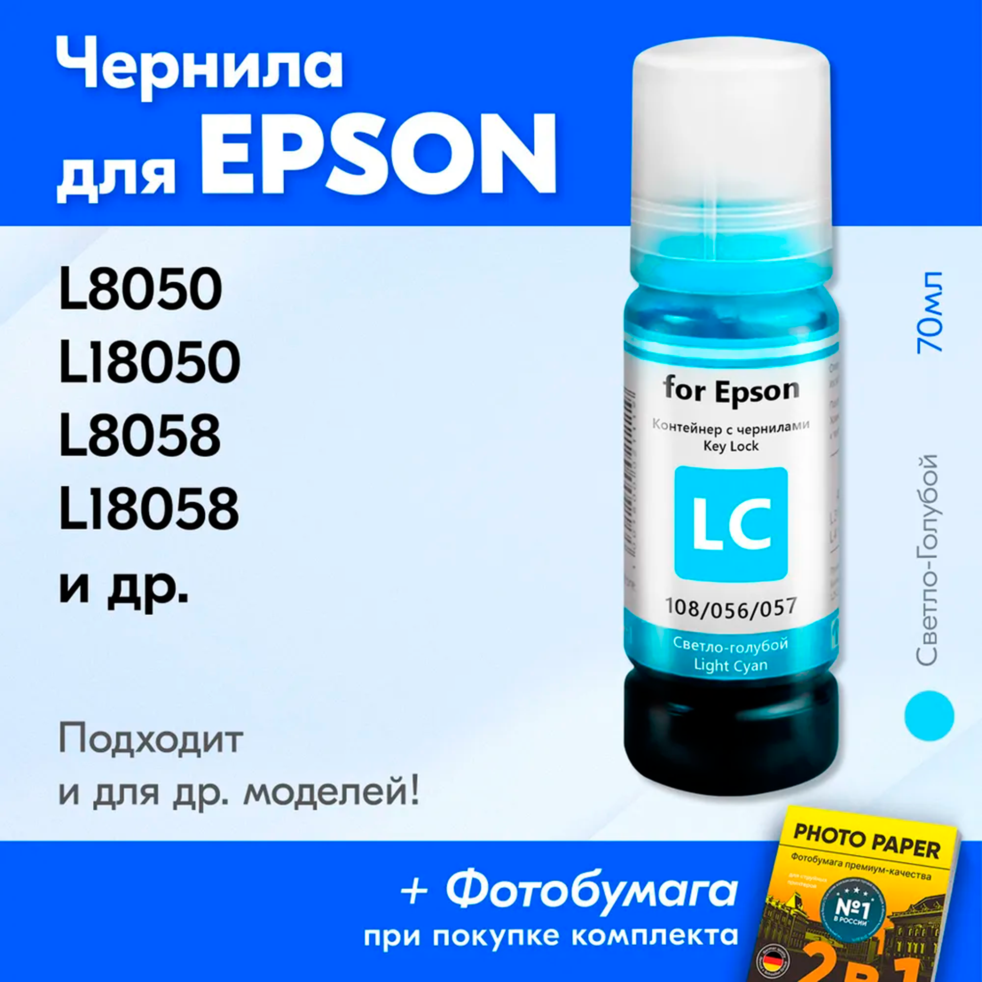 10 цен на Чернила к Epson L8050, L18050, L8058, L18058 и др. Краска для принтера Эпсон для заправки картриджей. Светло-голубой (Light Cyan)