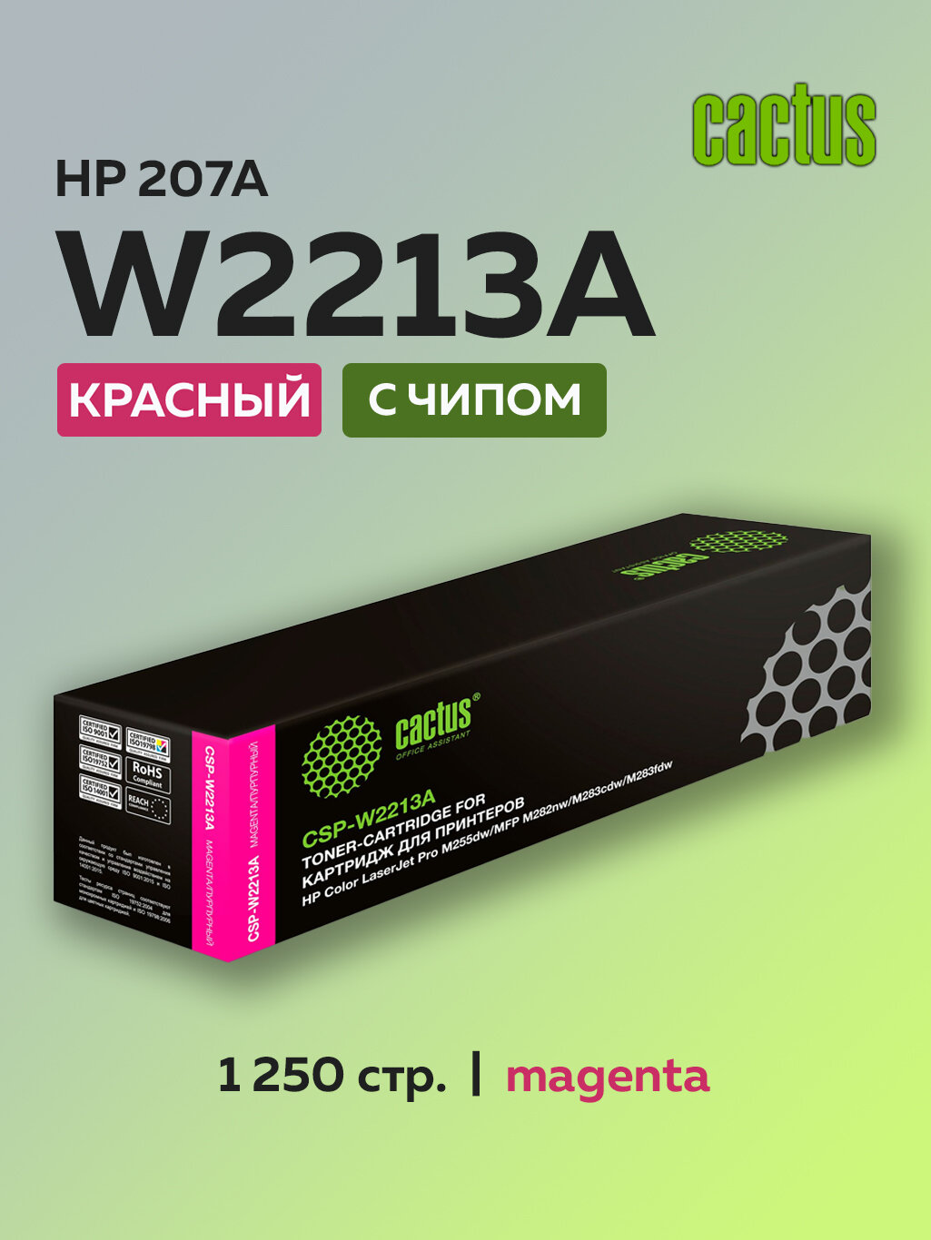 Картридж лазерный Cactus W2213A (HP 207A) пурпурный для HP M255, M282, M283 с чипом информация: