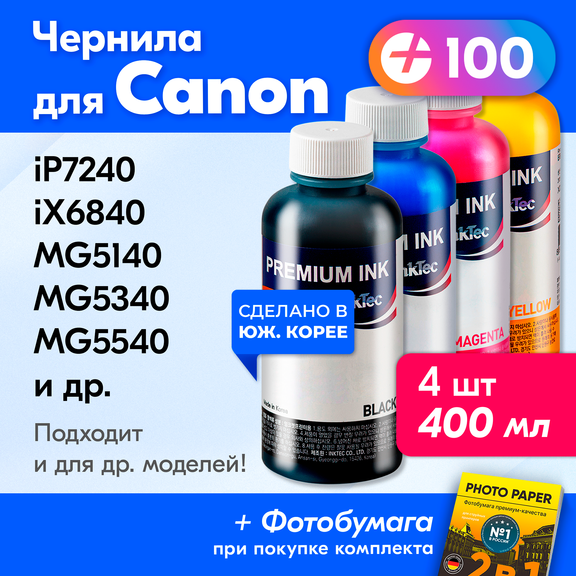 Чернила для принтера Canon PIXMA iP7240, iX6840, MG5140, MG5340, MG5540 и др. Краска на принтер для заправки картриджей (Комплект 4 шт) информация: