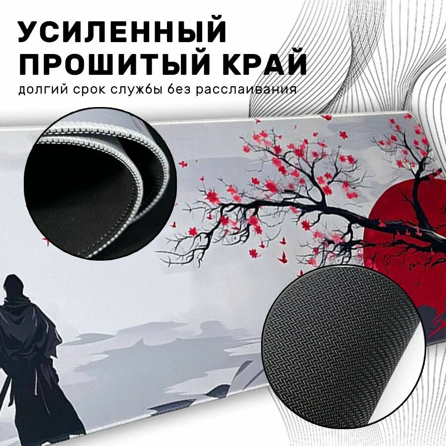 Большой игровой коврик в японском стиле для мышки и клавиатуры 90х40 см, самурай и сакура, закат в Японии информация: