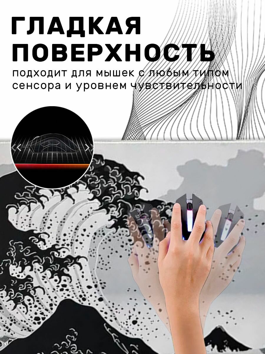 10 цен на Большой игровой коврик в японском стиле для мышки и клавиатуры 90х40 см, большая волна в канагаве белая