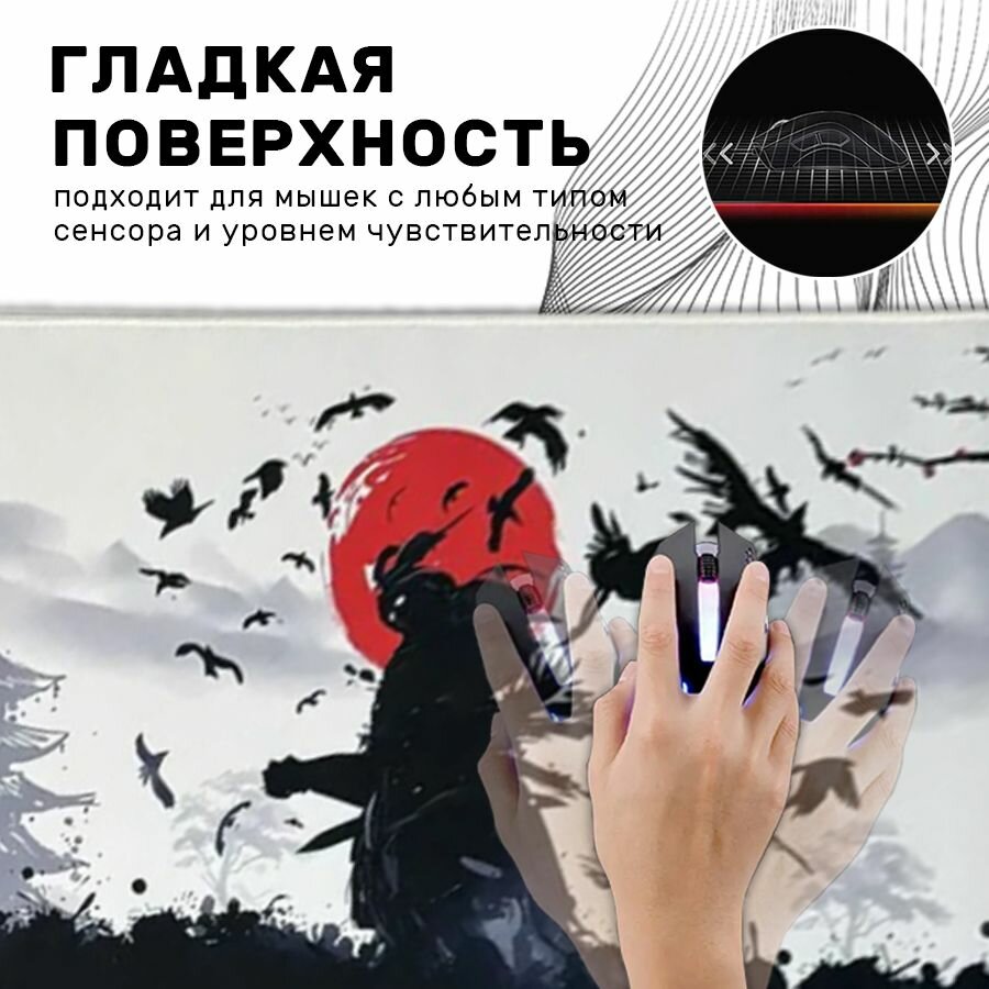 10 цен на Большой игровой коврик в японском стиле для мышки и клавиатуры 90х40 см, самурай и солнце