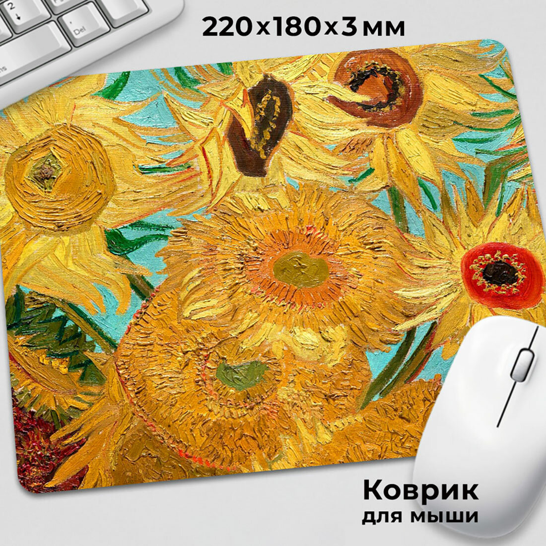 Коврик для мышки маленький Ван Гог Подсолнухи Красиво и умно информация: