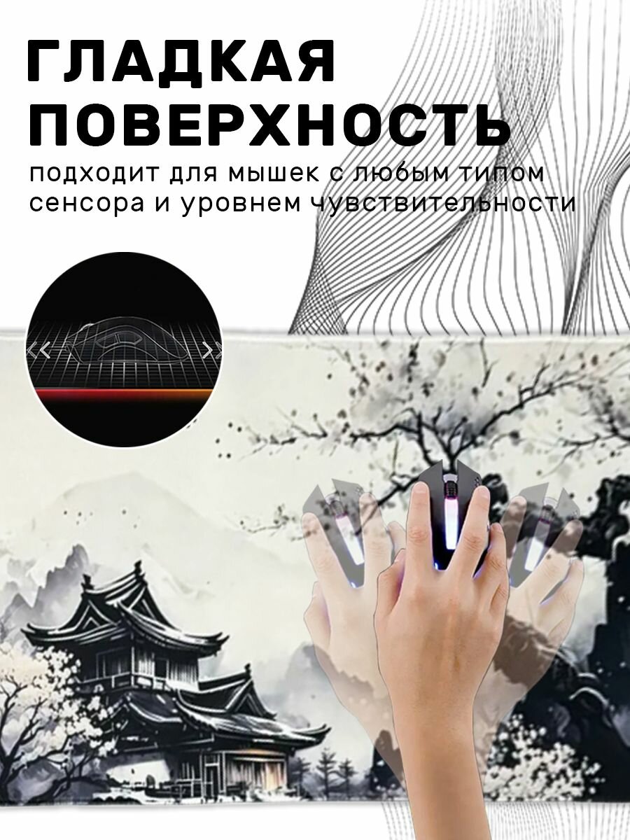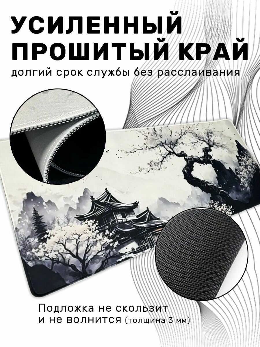 Большой игровой коврик в японском стиле для мышки и клавиатуры 80х30 см, японский пейзаж и сакура информация: