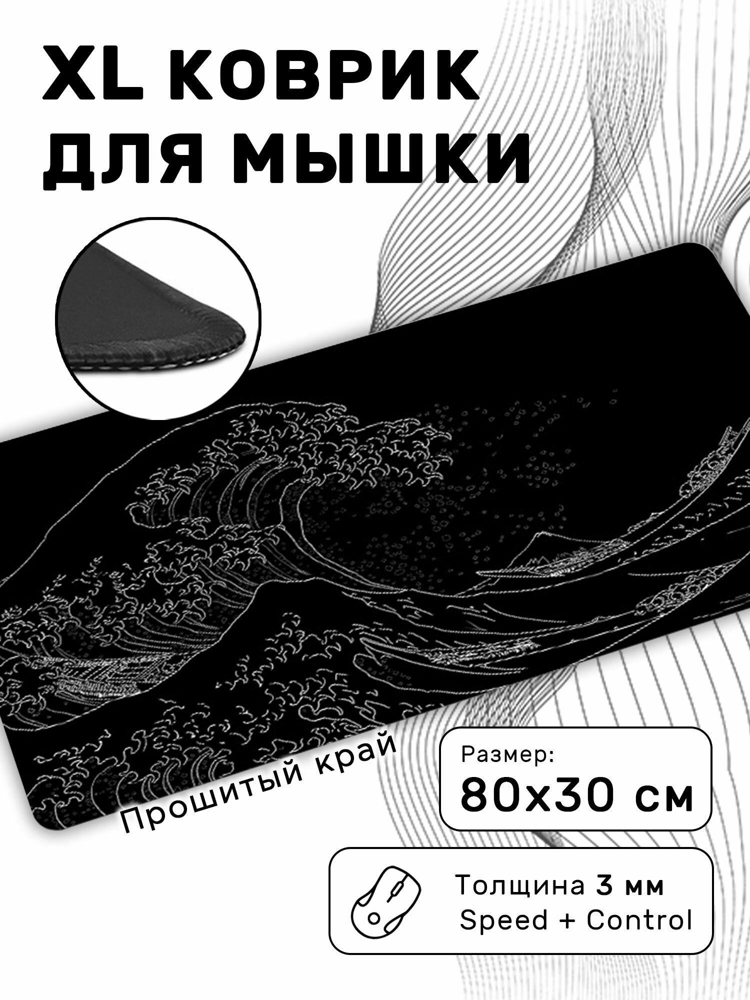 10 цен на Большой игровой коврик в японском стиле для мышки и клавиатуры 80х30 см, большая волна в Канагаве