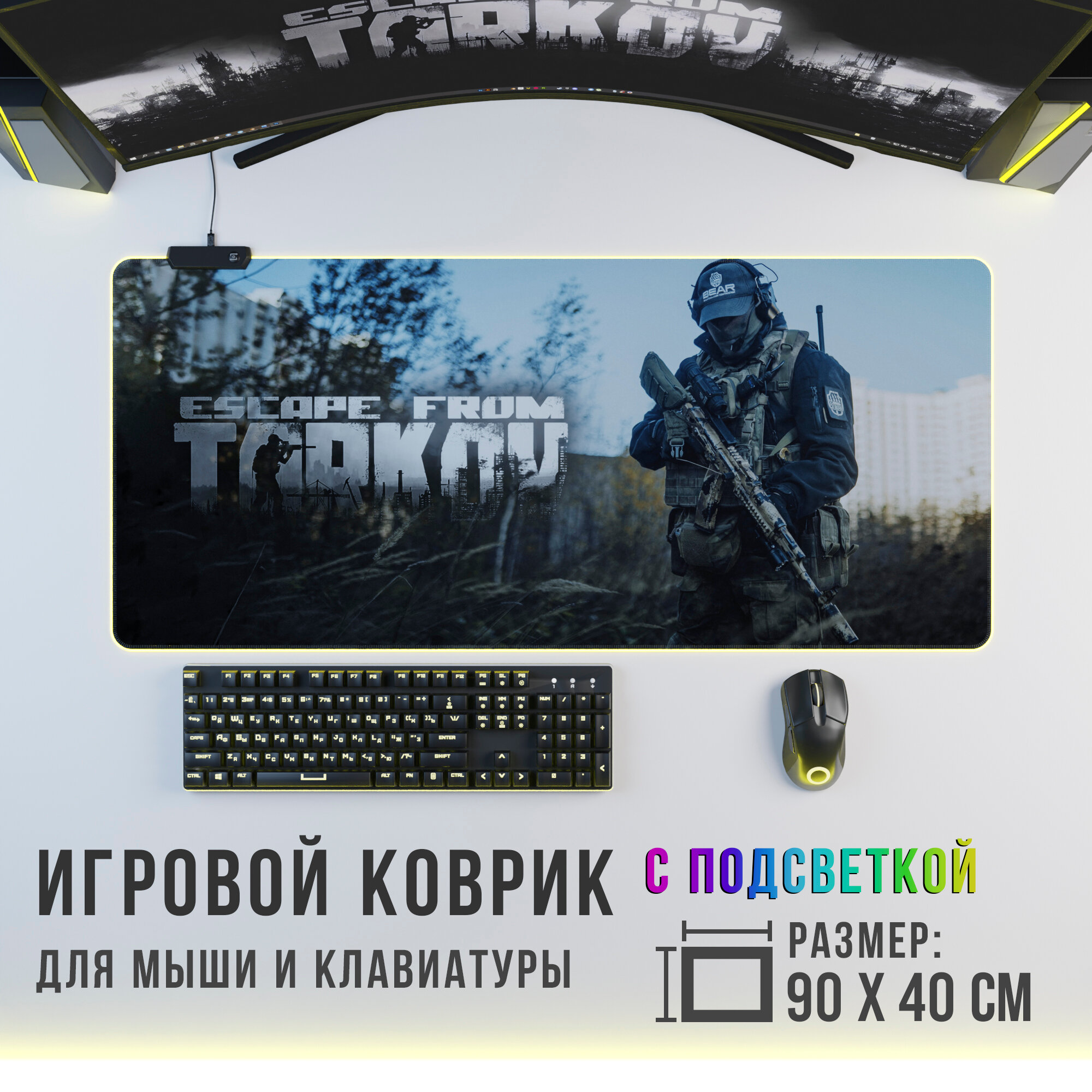 10 цен на Игровой коврик RGB Escape from Tarkov Bear , с подсветкой, 900х400 мм
