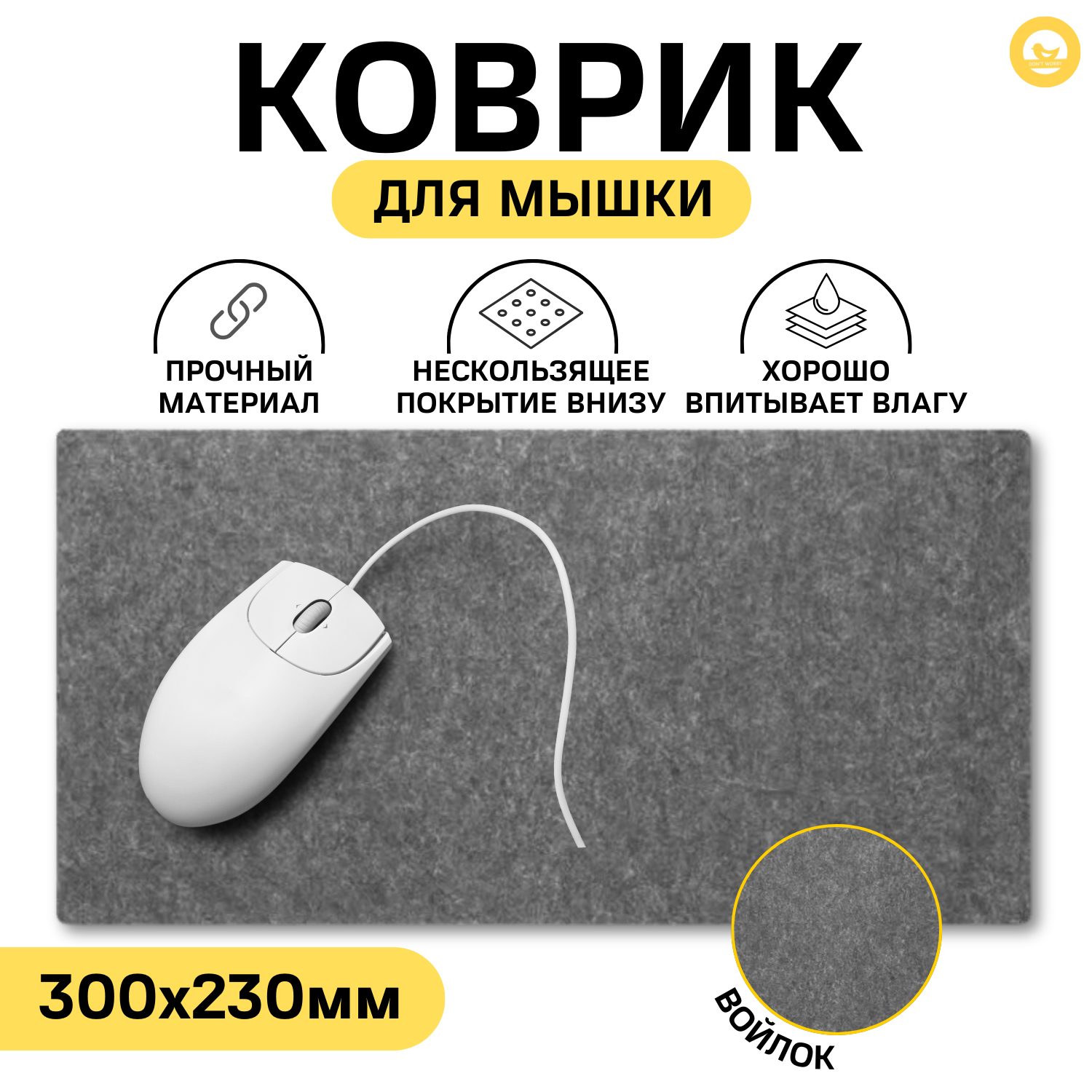 Коврик для мыши, войлок, 30 см x 23 см, противоскользящий, серый информация: