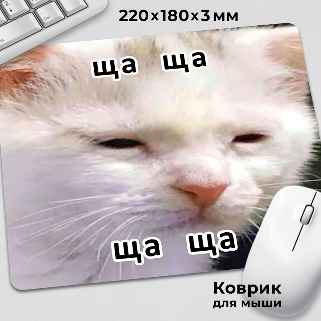 Коврик для мышки с приколом мем милый котик ща ща ща ща информация: