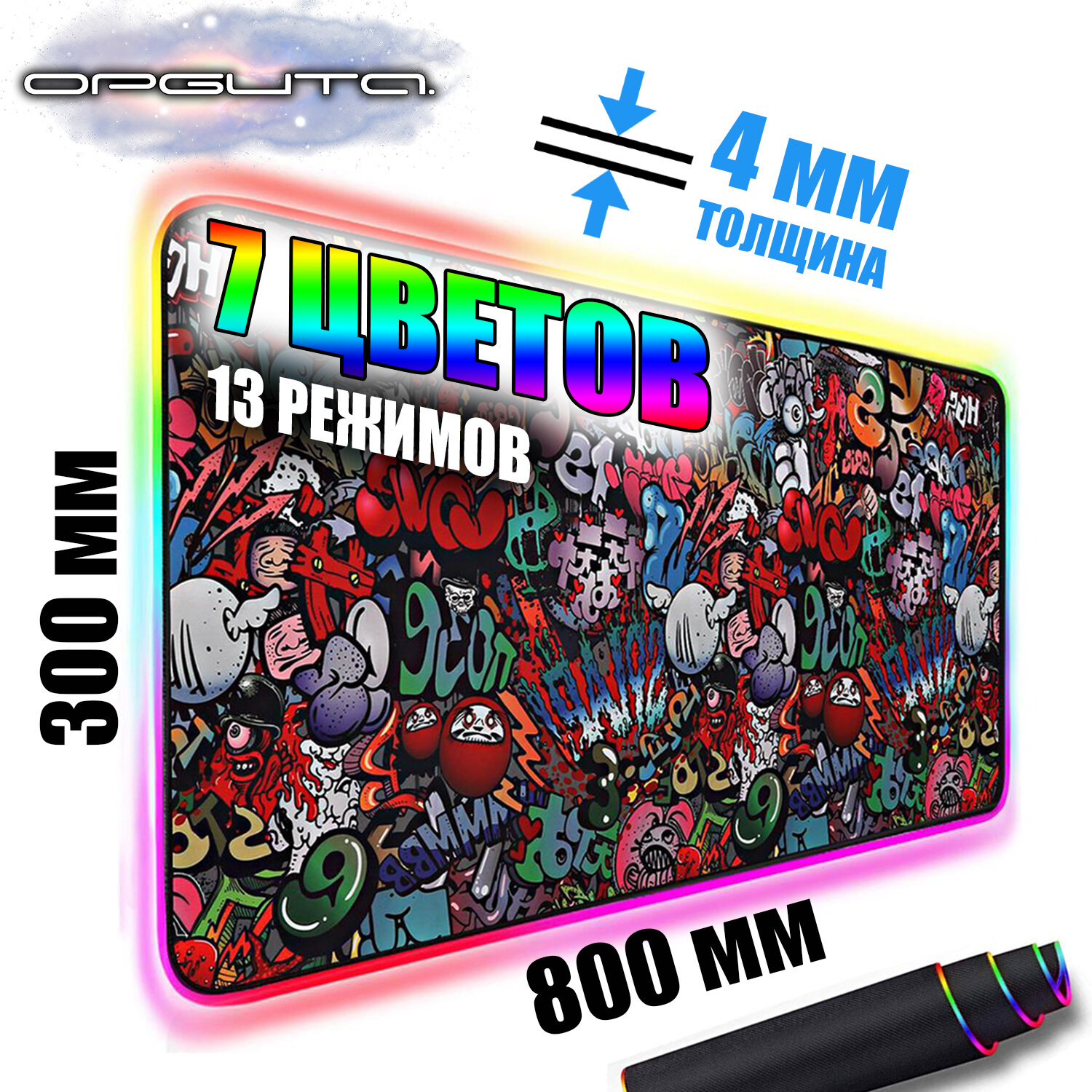 Коврик для мышки игровой с подсветкой Орбита OT-PCM56 Граффити информация: