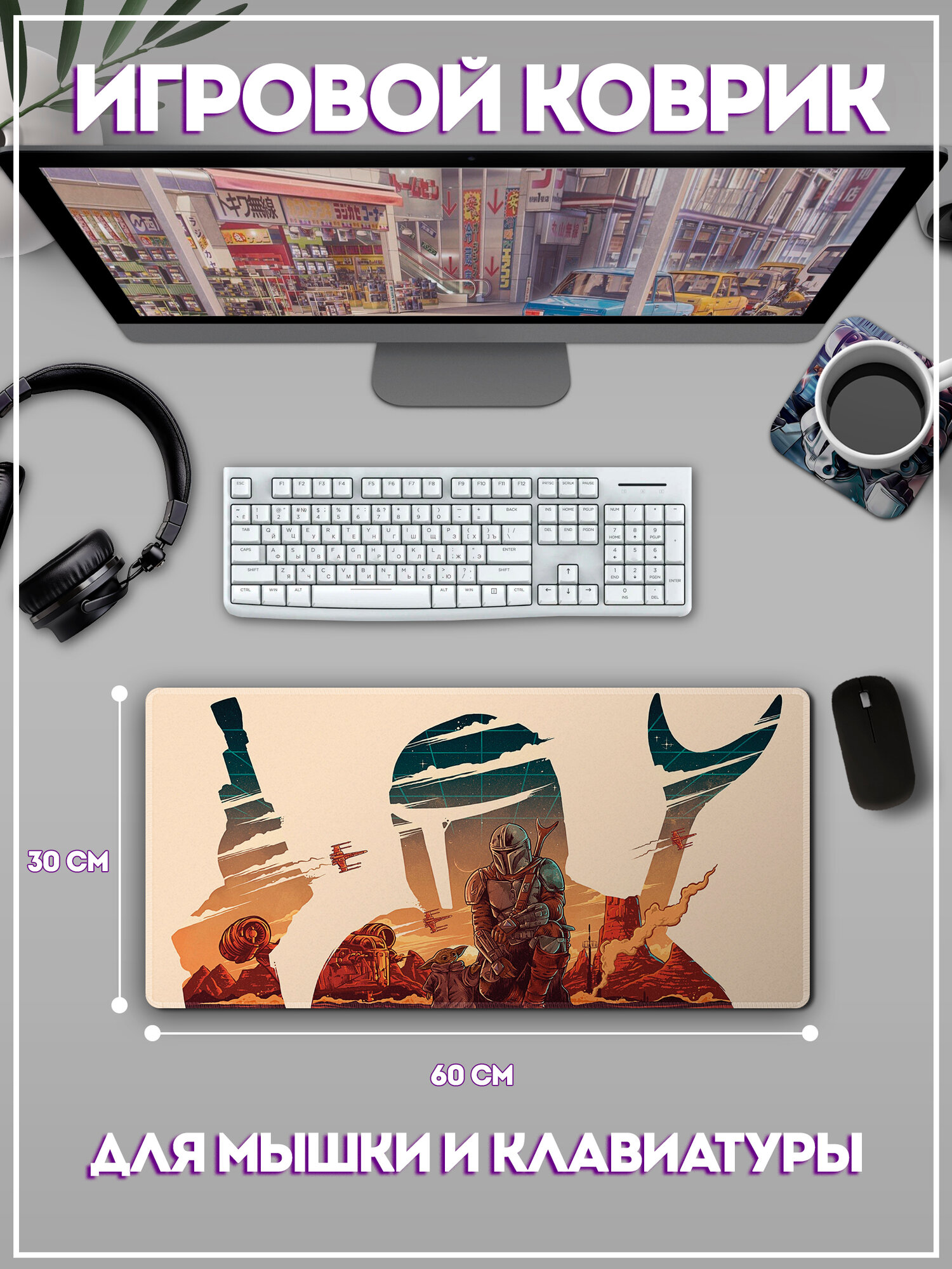 Отзывы на Игровой коврик для мыши и клавиатуры "Мандалорец" на весь стол, большой размер, 60х30 см