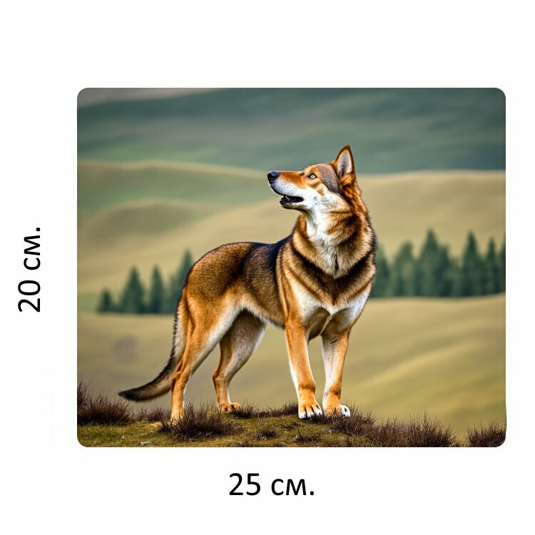 Отзывы на Коврик для мыши с принтом "Коричневый волк, стоящий на вершине холма и завывающий" 25x20см.