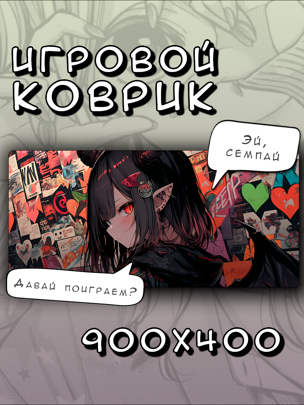 Коврик для мышки большой 900х400 Демоница, Игровой коврик для мыши аниме XXL, белый 2 690 ₽