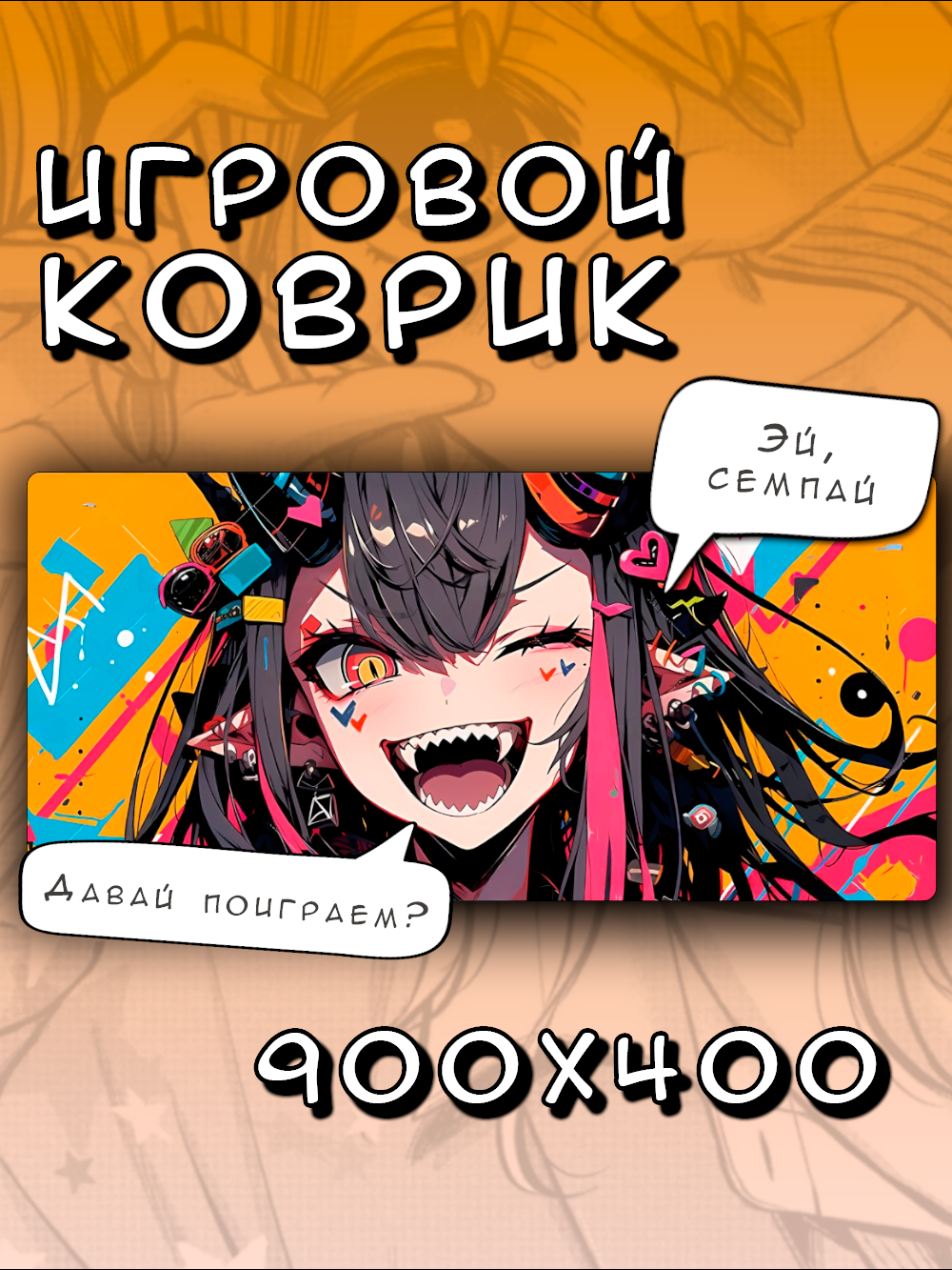 Коврик для мышки большой 900х400 Демоница, Игровой коврик для мыши аниме XXL, оранжевый информация: