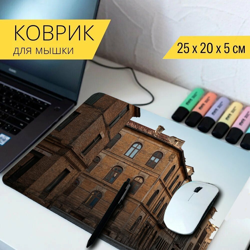 10 цен на Коврик для мыши с принтом "Градиент архитектуры старого города, от серого до коричневого с историей" 25x20см.