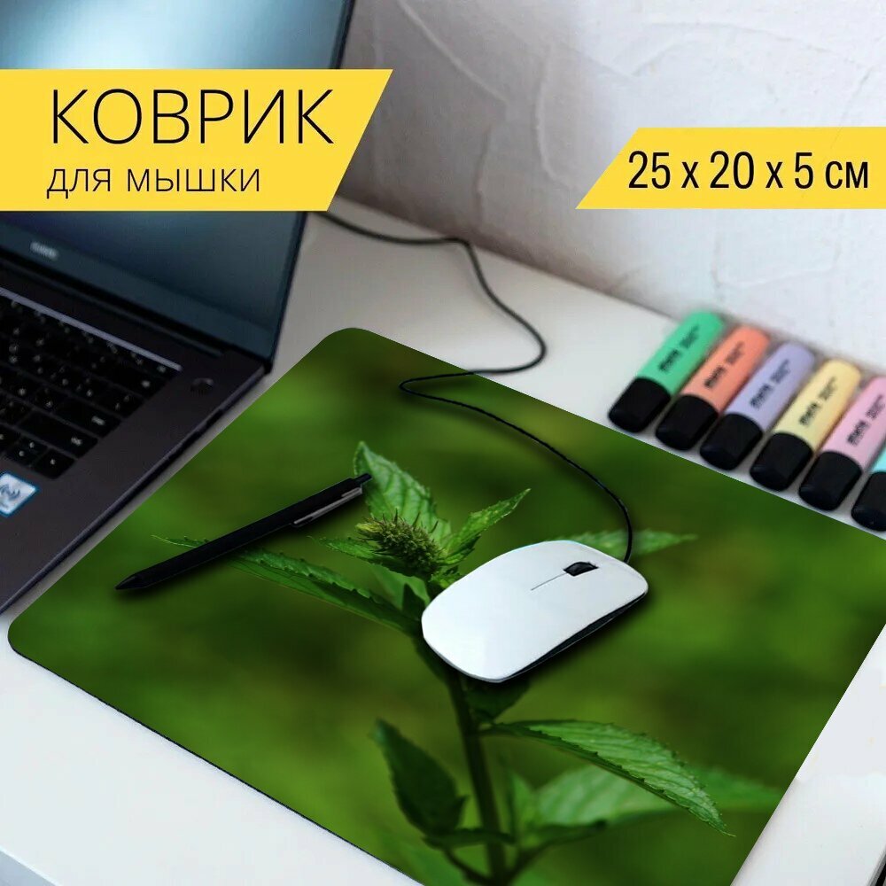Коврик для мыши с принтом "Зеленая мята, зеленый, природа" 25x20см. информация: