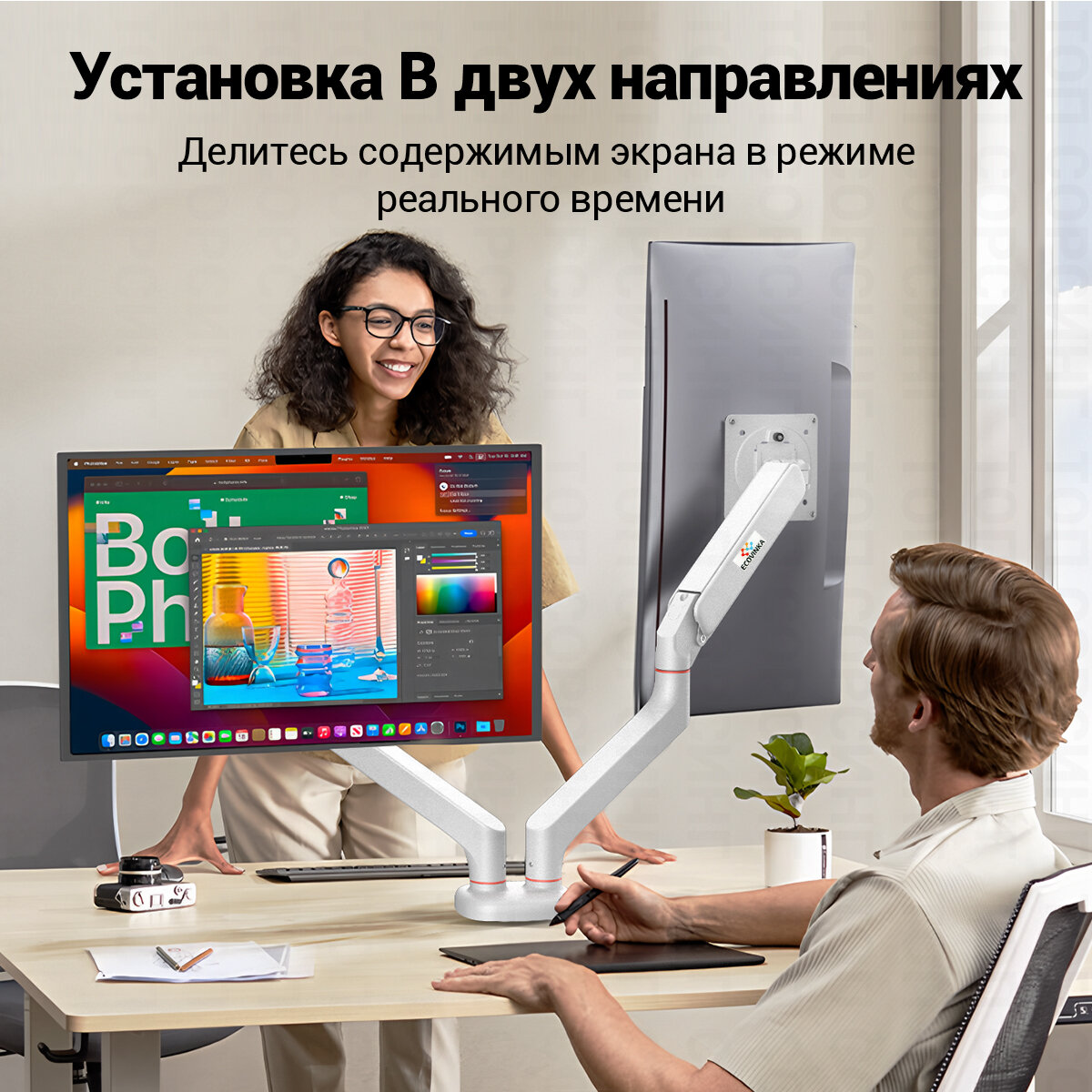 Отзывы на ECOVINKA кронштейн для монитора 13"-32" дюймов настольный, Белый M4-24 / подставка под монитор до 9 кг