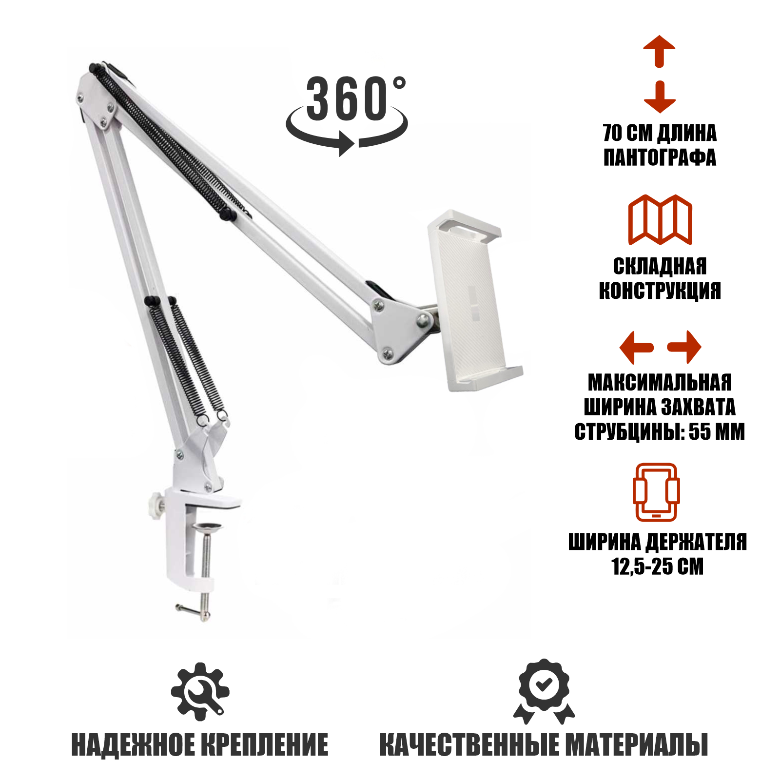 10 цен на Держатель DP25-NBS-W для планшета шириной до 25 см на пантографе и усиленной струбцине, белый