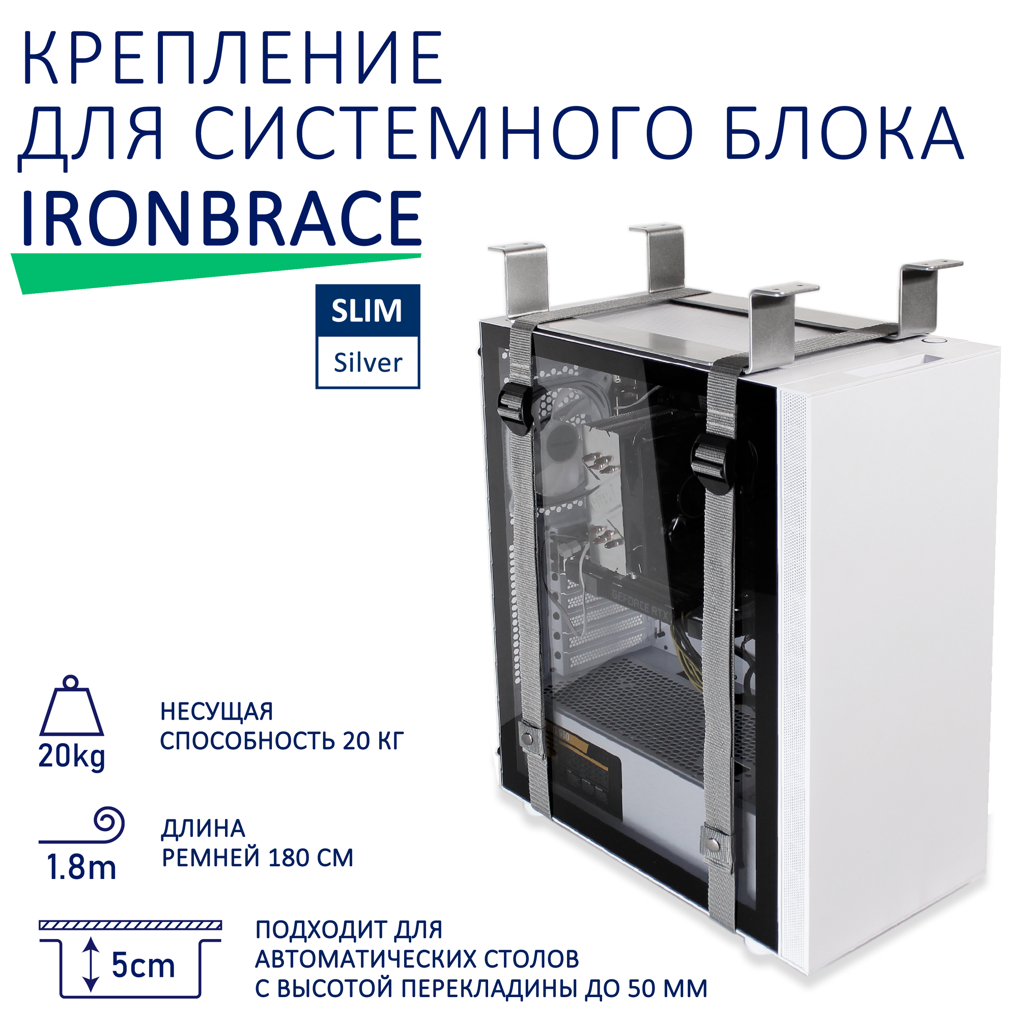 Подвесное крепление для системного блока Ironbrace Slim, под стол, серебристый информация: