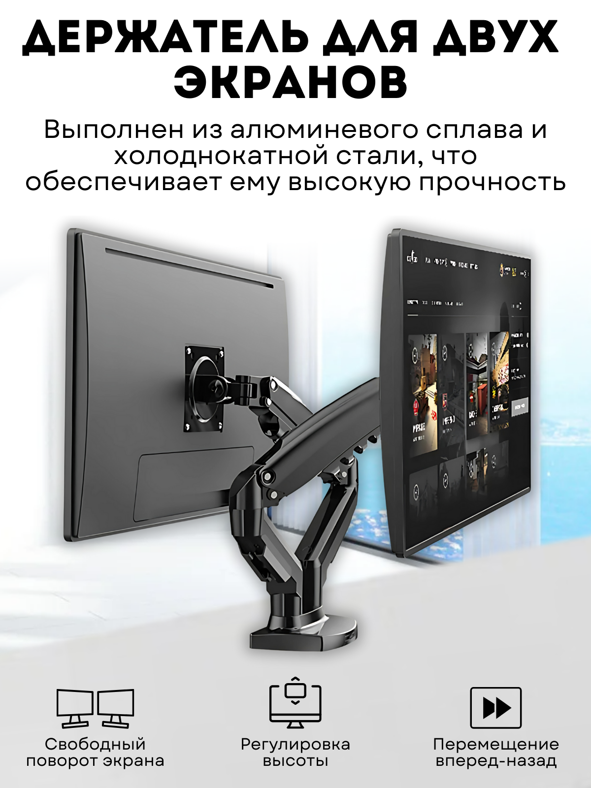 Отзывы на Кронштейн для двух мониторов 17"-27" настольный, поворотно наклонный, серый