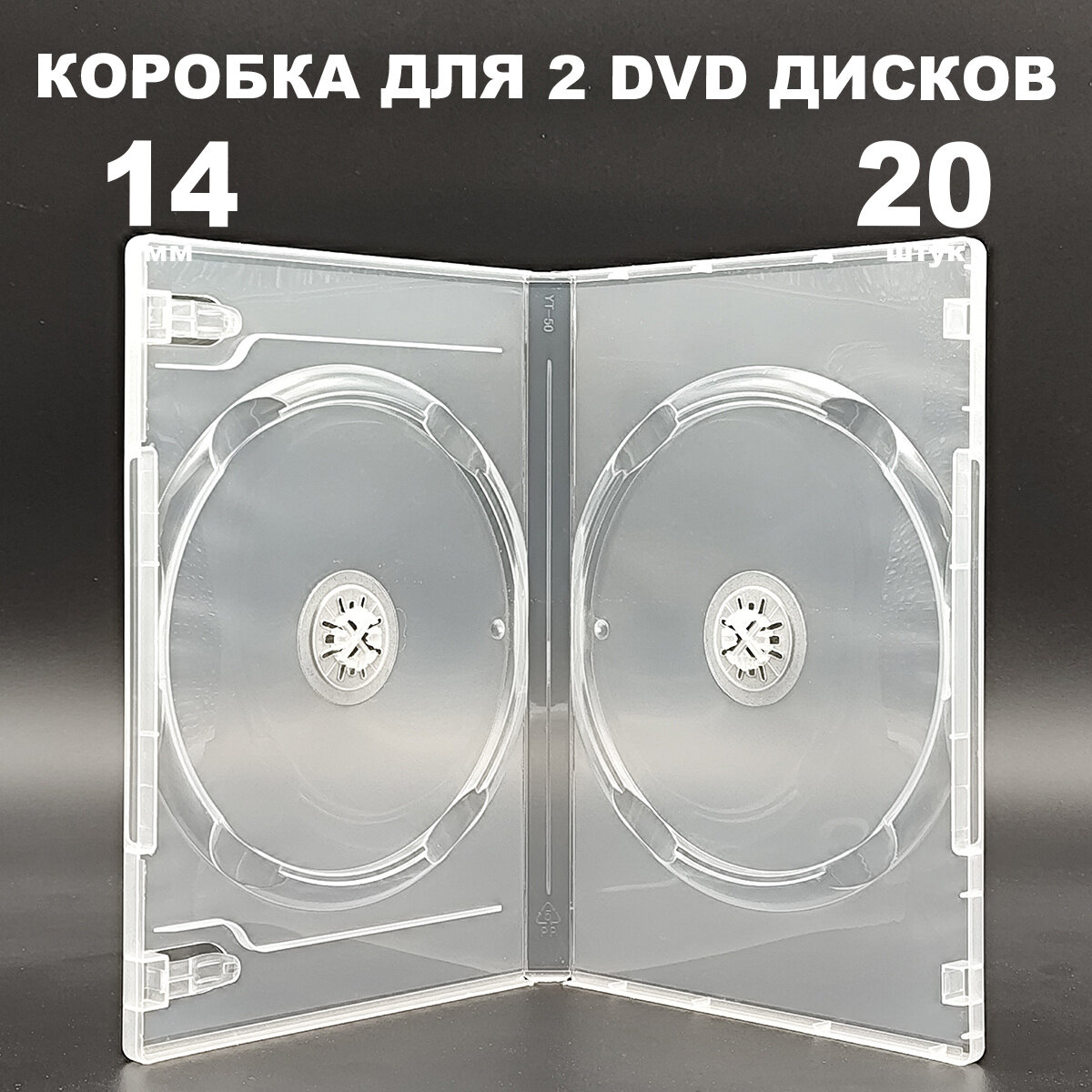 10 цен на Коробка DVD на 2 диска / Бокс DVD на 2 диска прозрачный, 14мм, упаковка 20 штук