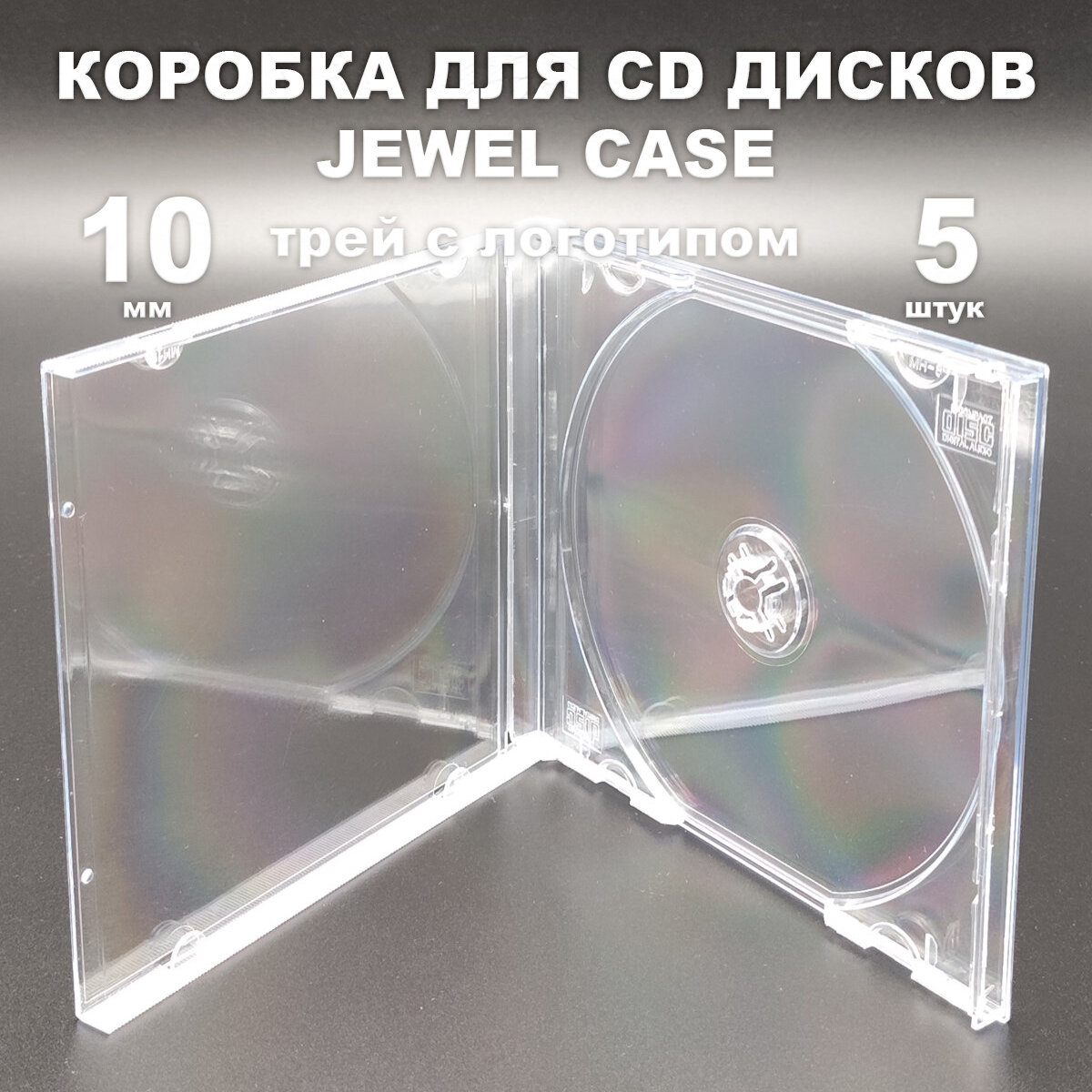 10 цен на Коробка CD Jewel 1 диск с лого, 5 штук / Бокс CD Jewel 1 диск прозрачный трей, 10мм, с логотипом Compact Disc
