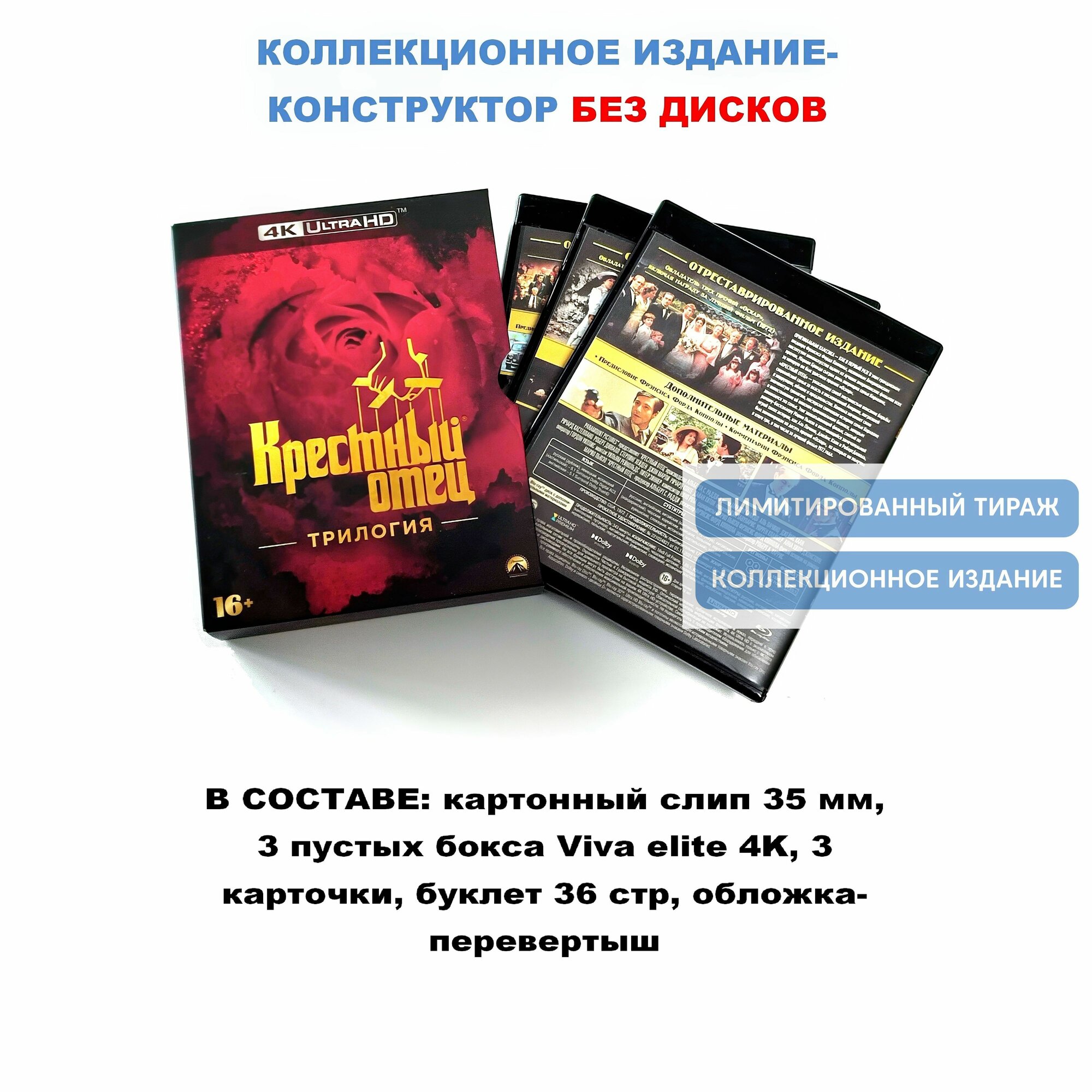 Крестный отец. Трилогия. Коллекционное издание-конструктор без дисков (4K UHD Blu-ray) слип, 3 бокса, 3 карточки, буклет / 16+ информация: