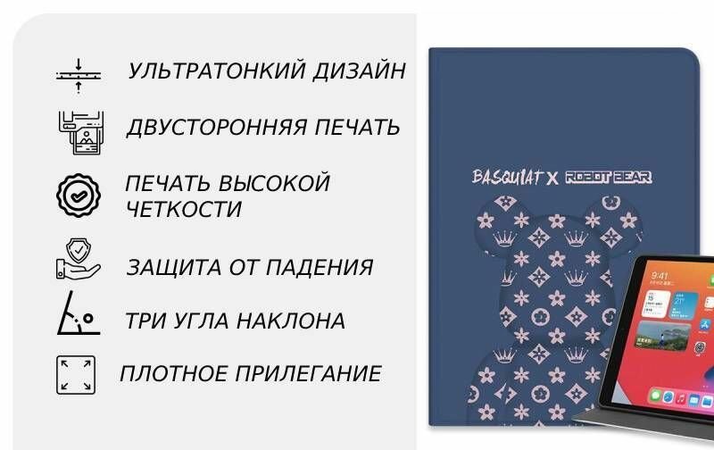 Отзывы на Чехол на планшет Apple iPad Air 10,5" для моделей iPad Air 3 (2019), Pro (2017) (10,5 дюйма) Bearbrick синий