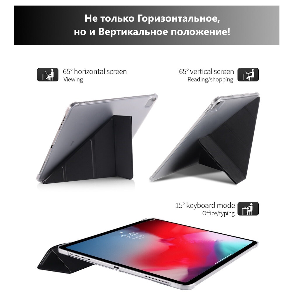 Чехол для iPad Pro 11 (2018-2022гг) горизонтальный и вертикальный умный чехол трансформер для iPad, с местом для стилуса, Чёрный 1 643 ₽